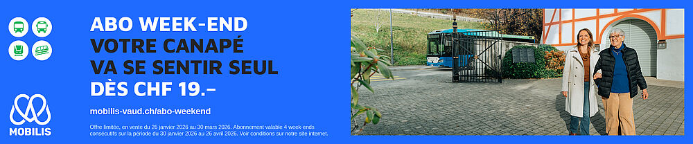 la Communauté tarifaire vaudoise Mobilis relance en ce début d’année son offre Abo Week-end, permettant à la population de voyager en transports publics à prix réduit dans tout le canton de Vaud, les week-ends et les jours fériés.